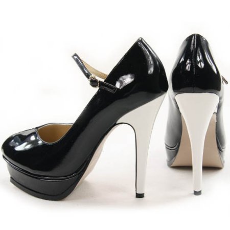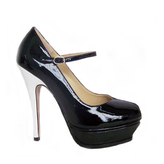 Черный лак с белым каблуком уникален своей универсальностью.