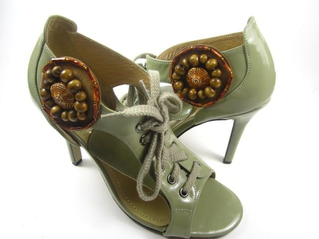 Высота каблука 10см, Зеленый цвет на боку гармоничное оригинальное пано с осины и янтаря.